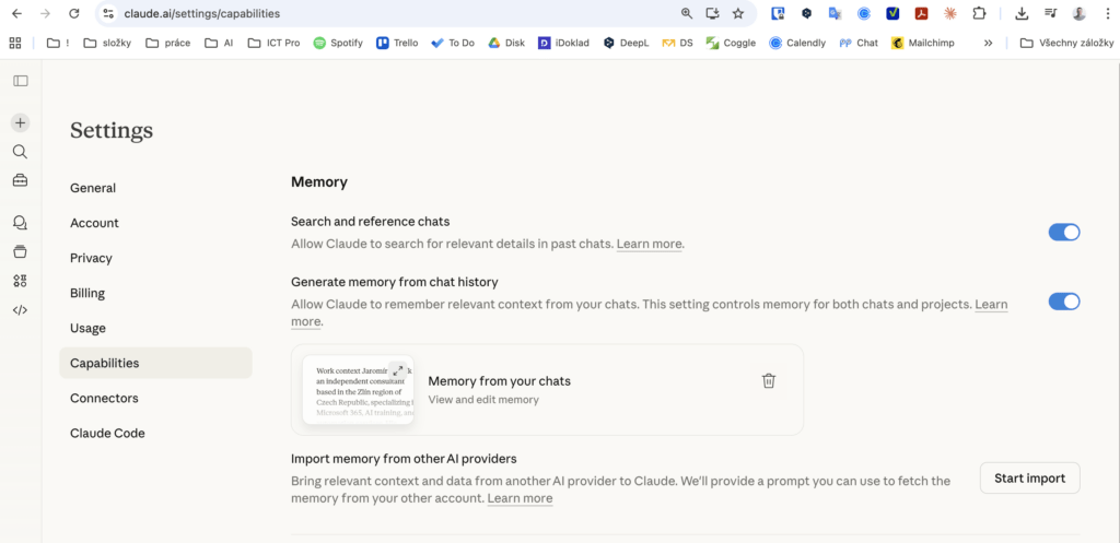 Claude – memory from other AI providers